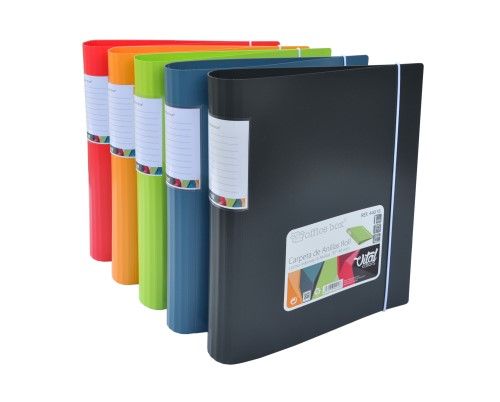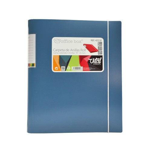 42518· Carpetas de anillas en "D" de 25 mm.· Con cierre de goma redonda ancha en color blanco.· Con compresor de hojas incluido.· Incluye etiqueta personalizable.· Lomo redondo.· Medidas A4: 32,5 x 28 cm· Formato A4+(oficina hogar escolar)