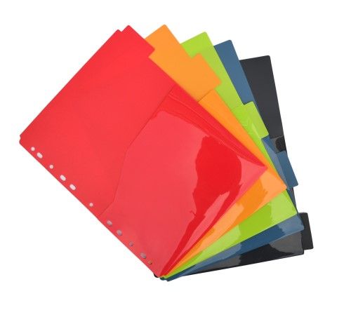 93218· Multitaladro para archivar en anillas.· 5 Colores, 5 Posiciones. · Pestañas indicadoras con papel incluido.· Bolsillo para documentos en cada separador.· Formato A4(oficina hogar escolar separadores multitaladros)