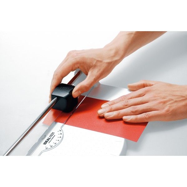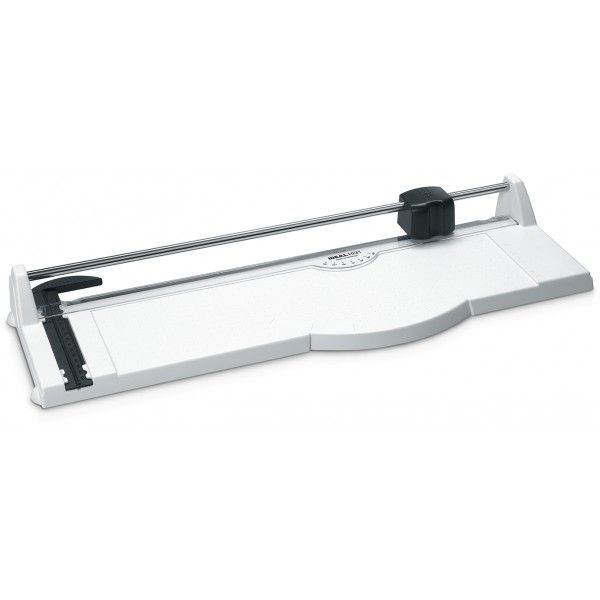 4019364082009 10310000Cabezal de corte de seguridad de diseño ergonómico.Cuchilla giratoria intercambiable realizada en acero endurecido.Barra de sujeción transparente con pisón automático.Medidor frontal extensible con escala de medida que puede ser usado también como medidor trasero.Transportador con marcas de contacto en el pisón y la mesa.Cuadrícula en centímetros y escala graduada en la mesa de corte.Estructura robusta hecha de plástico resistente a golpes.Patas de goma antideslizante para un agarre seguro.Ideal para formatos A3.Datos Técnicos:Peso 0.9 kgLongitud de corte 430 mmCapacidad de corte 5 - 6 hojas papel 70 gr.Escala patrón en cmDimensiones 61 x 576 x 201(cizallas guillotinas escolar oficina)