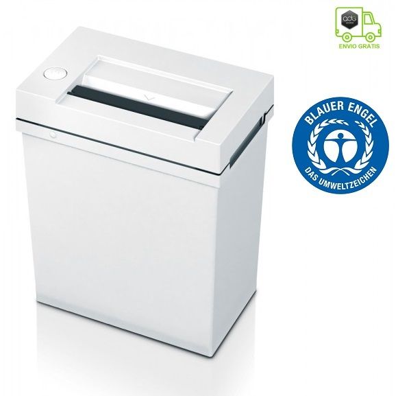 4019364502965 22459111Destructora de escritorio fácil de usar para usuarios concienciados con el medioambiente. Galardonada con el “Blue Angel” por su eficiencia energética.Cómodo interruptor multifunción EASY-Touch con posición de standby / paro (off) / marcha atrás con indicadores visuales integrados. Inicio y paro automáticos controlados mediante fotocélula. Retroceso y desconexión automáticos. Modo standby ZERO ENERGY: desconexión automática de la alimentación tras 30 minutos. Solapa de seguridad transparente en la ranura de alimentación como elemento de seguridad adicional. Ancho de trabajo A4 (220 mm). Silencioso motor de corriente alterna. Doble protección del motor contra sobrecalentamientos. Cabezal de corte de alta calidad a prueba de clips, fabricado con acero reforzado especial con garantía de por vida.Papelera de 20 litros de capacidad. Prácticas asas laterales para levantar el cabezal de la máquina de la papelera.Datos Técnicos:Peso 7.5 kg Capacidad de corte 3 × 25 mm: hasta 7 hojasDimensiones 428 × 345 × 213 mmVolumen del recipiente 20 lAnchura de entrada 220 mm(destructoras confeti hogar oficina)