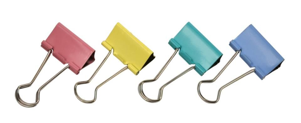 · 48 Pinzas abatibles en 5 colores surtidas: azul, verde, blanco, rosa y amarillo.