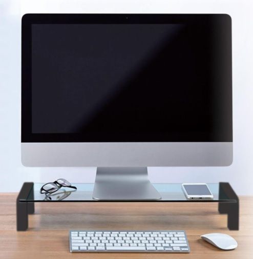 46068· Soporte para monitor que permite una visión óptima de la pantalla.· Fabricado en cristal templado.· Carga Máxima de 15 kg.· Color: Negro.· Medidas: 550 x 180 x 80 mm.( hogar oficina ergonomía)