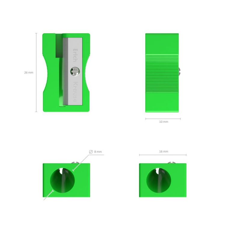 38013 4041485380139Descripción:Afilador clásico en colores neon con una zona de agarre ergonómica. Con un orificio de 8 mm de diametro para afilar lapices estandares de grafito negro y de color.Cuchilla niquelada de acero al carbono en forma de espiral de alta calidad.(afiladores sacapuntas escolar oficina)