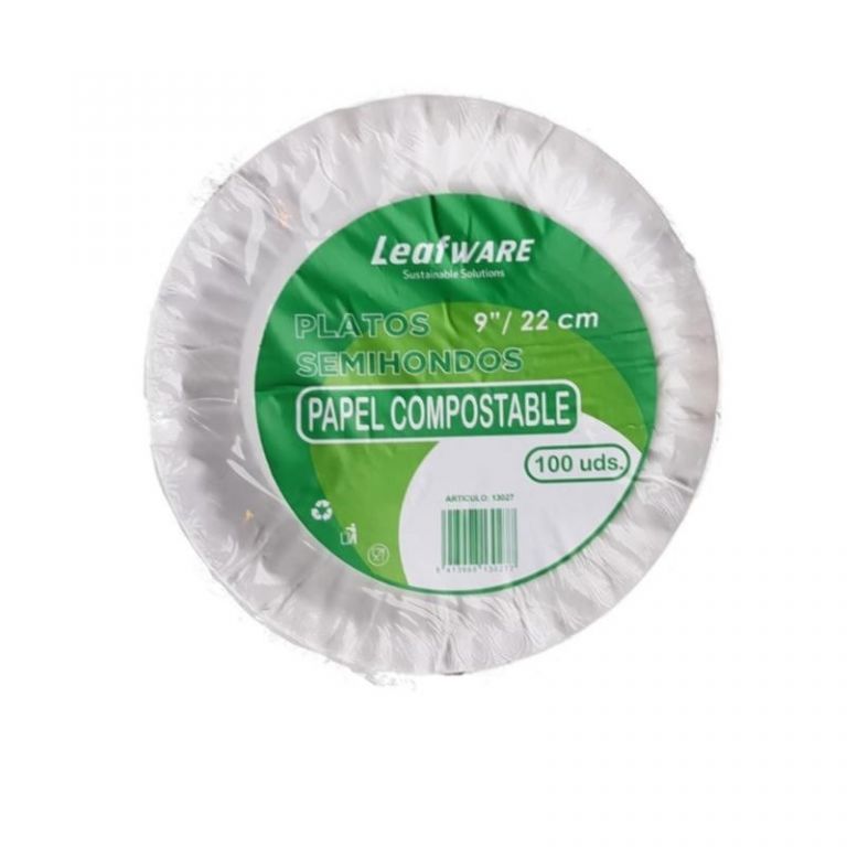 13023 Plato Semihondo de papel en color blanco de 230mm Compostable Medidas: 22mmPeso: 350gColor: BlancoMaterial: PapelPaquete de 100 unidades(platos tenderetes hogar oficinas)