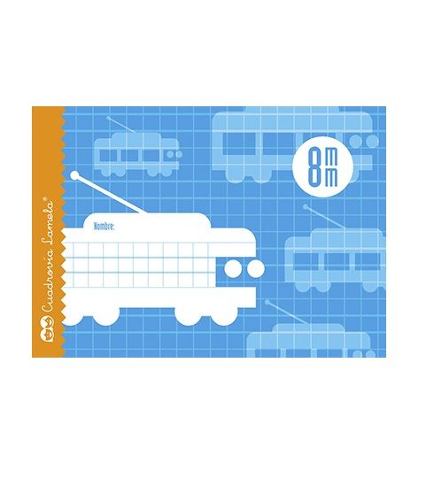 84128552020341 05008 Cartón plastificado impreso en color azul, grapadas en el lomo. Offset blanco extra de 70 g/m con margen. Libreta Apaisada en tamaño cuarto de cubierta básica de 16 hojas.Rayados con CUADROVÍA en tamaños de 8mm(cuadernos francesa libretas pauta)