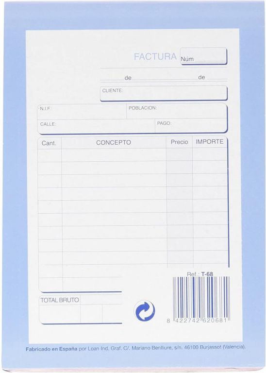 Loan Talonario Factura T68 Duplicado 10,5 x 15Cm