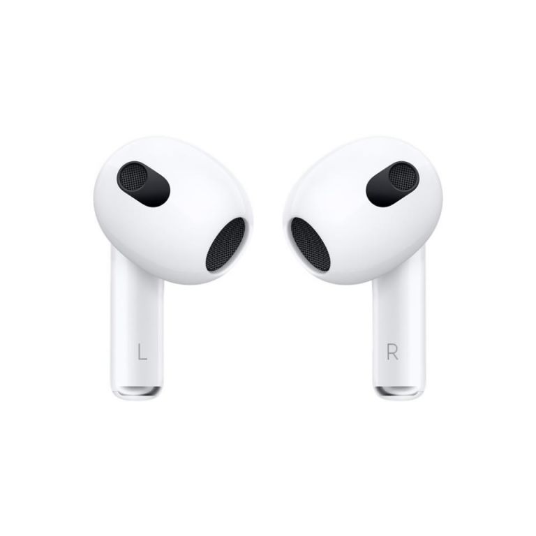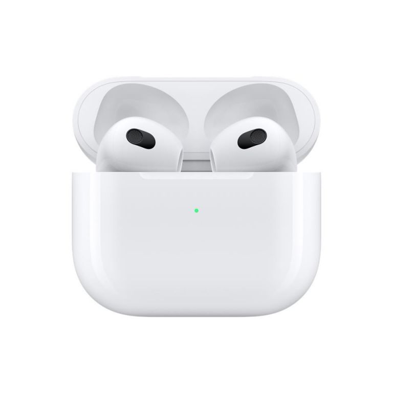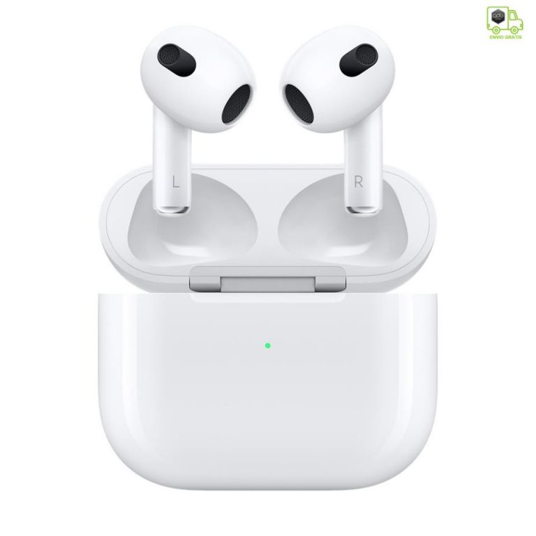 MME73TY/A AirPods (3.ª generación)Nuevo diseñoLos AirPods no pesan nada y ofrecen un ajuste anatómico. Se colocan en el ángulo perfecto para darte un mayor confort y llevar el sonido directamente a tus oídos. Además, son un 33 % más cortos que los AirPods (2.ª generación) e incluyen un sensor de presión que te permite controlar la música y las llamadas fácilmente.Audio espacial con seguimiento dinámico de la cabezaEl sonido te rodea con un efecto envolvente. Sumérgete en una experiencia tridimensional cada vez que escuchas música o ves una película o una serie. Los giroscopios y los acelerómetros de los AirPods siguen los movimientos de tu cabeza y tendrás la sensación de estar en medio del escenario.¹Ecualización adaptativaLa música se adapta automáticamente a la forma de tu oído. Los micrófonos orientados hacia dentro detectan lo que estás escuchando y regulan las frecuencias bajas y medias para que distingas cada nota con nitidez.Mayor duración de la bateríaComo los AirPods (3.ª generación) tienen una hora más de autonomía que los AirPods (2.ª generación), podrás disfrutar de hasta 6 horas de reproducción de audio² y hasta 4 horas de conversación.5 Con una carga de 5 minutos tendrás alrededor de una hora de reproducción de audio6 o de conversación.7 Y con el estuche de carga MagSafe puedes disfrutar de hasta 30 horas de reproducción de audio y usar cargadores inalámbricos y compatibles con MagSafe.8Resistentes al agua y al sudorLos AirPods y el estuche de carga MagSafe tienen una calificación IPX4 de resistencia al agua. Eso significa que podrás usarlos bajo la lluvia y en entrenamientos intensos.³Magia en todos los sentidosLo único que tienes que hacer para usar tus AirPods es sacarlos del estuche. Están diseñados para pasar de un dispositivo Apple a otro automáticamente e incorporan un detector que sabe cuándo los llevas puestos y cuándo no. Si activas la opción Anunciar Notificaciones, Siri te las leerá en voz alta cuando uses los AirPods. Y con Audio Compartido, puedes enlazar dos pares de AirPods y ver una serie o escuchar una canción con quien tú quieras.4Aspectos destacadosDiseñados por AppleAudio espacial con seguimiento dinámico de la cabeza para una experiencia de sonido tridimensional envolvente¹Sonido de gran calidad con ecualización adaptativaAjuste anatómicoControles de sensor de presiónResistentes al agua y al sudor (IPX4)³Configuración sencilla para todos tus dispositivos AppleEl estuche puede cargarse sin cables con un cargador MagSafe, cargadores con certificación Qi o el conector LightningContenido de la cajaAirPodsEstuche de carga MagSafeCable de conector Lightning a USB-CDocumentaciónEspecificacionesTecnología de sonidoAudio espacial con seguimiento dinámico de la cabeza¹Ecualización adaptativaTransductor a medida de alta excursión de AppleAmplificador de alto rango dinámico a medidaSensoresDos micrófonos con tecnología beamformingSensor de presiónMicrófono orientado hacia adentroAcelerómetro con detección de movimientoSensores de pielAcelerómetro con detección de vozChipChip H1 para auricularesControlesPulsa una vez para reproducir audio, ponerlo en pausa o responder una llamadaPulsa dos veces para pasar a la canción siguientePulsa tres veces para volver a la canción anteriorMantén pulsado para activar SiriDi «Oye Siri» para pedir una canción, hacer una llamada, obtener indicaciones y mucho másResistencia al sudor y al aguaResistentes al agua y al sudor (IPX4)³Dimensiones y pesoAirPods (cada uno)?Alto: 3,08 cmAncho: 1,83 cmGrosor: 1,93 cmPeso: 4,28 gEstuche de carga MagSafe?Alto: 4,64 cmAncho: 5,44 cmGrosor: 2,14 cmPeso: 37,91 gEstuche de cargaCompatible con el cargador MagSafe, cargadores con certificación Qi y el conector LightningBateríaAirPodsHasta 6 horas de reproducción de audio con una sola carga (hasta 5 horas con la función de audio espacial activada)²Hasta 4 horas de conversación con una sola carga5AirPods con estuche de carga MagSafeHasta 30 horas de reproducción de audio8Hasta 20 horas de conversación¹°5 minutos en el estuche te dan en torno a 1 hora de reproducción de audio6 o 1 hora de conversación7ConexionesBluetooth 5.0AccesibilidadLas prestaciones de accesibilidad de los AirPods ayudan a las personas con discapacidad a sacarles el máximo partido.Prestaciones incluidas:Escucha en Directo para audio¹¹Nivel de los AuricularesAjustes para AuricularesRequisitos del sistemaModelos de iPhone y iPod touch con la última versión de iOS¹²Modelos de iPad con la última versión de iPadOS¹²Modelos de Apple Watch con la última versión de watchOS¹²Modelos de Mac con la última versión de macOS¹²Modelos de Apple TV con la última versión de tvOS¹²1. Espacializar Estéreo es compatible con contenido estéreo en iOS 15 o posterior, Apple Music con Dolby Atmos o 5.1 y contenido de vídeo grabado en 5.1, 7.1 o Dolby Atmos en aplicaciones compatibles.2. Pruebas realizadas por Apple en septiembre de 2021 con prototipos de los AirPods (3.ª generación) y del estuche de carga MagSafe enlazados con unidades del iPhone 13 Pro Max y versiones beta de software. La lista de reproducción incluía 358 pistas de audio compradas en el iTunes Store (codificadas en AAC a 256 Kb/s). El volumen estaba ajustado al 50 %. Con el audio espacial con seguimiento dinámico de la cabeza activado se alcanzaron las 5 horas de reproducción de audio. Las pruebas consistieron en agotar la batería de los AirPods reproduciendo audio hasta que el primer auricular dejó de sonar. La duración de la batería depende de los ajustes del dispositivo, las condiciones ambientales, el uso y otros muchos factores.3. Los AirPods (3.ª generación) son resistentes al agua y al sudor en entrenamientos y deportes no acuáticos. Las pruebas se han realizado bajo control en un laboratorio. Los AirPods (3.ª generación) tienen una calificación IPX4 según la norma IEC 60529. La resistencia 