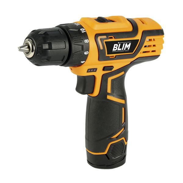 BL0100 8436049028767 • Mango ergonómico• Incluye 2 baterías 12V - 2.0 Ah• Display y luz LED para iluminar la zona de trabajo.• 2 velocidades: 0-400rpm y 0-1500rpm• Par máximo: 28Nm.• Par de apriete: 18+1• Portabrocas de 10mm sin llave• Cargador rápido.• Incluye maletin de transporte con accesorios( herramientas taladros ) Comprar Blim en Canarias.