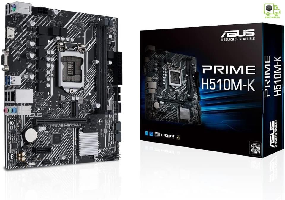 Asus Placa base Prime H510M-K Intel LGA 1200 undecima y decima generacion 2xDDR4 3200 2933 2800 2666 2400 2133Mhz hasta 64GB HDMI VGA 2xPCIex1 1xPCIex16 1xM.2 4xSATA 6Gb/s Ethernet 2xUSB 3.1 4xUSB 2.0 PS/2