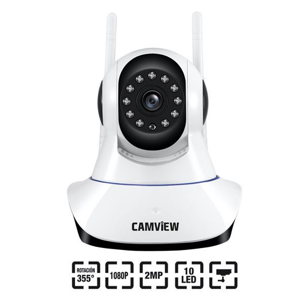 CV0225 8436049032245 CAMARA IP INALÁMBRICA MOTORIZADA 2MP ONVIF CAMVIEW • Cámara tipo PTZ INTERIOR día-noche• Lente fija 3.6 mm.• Resolución 2MP 1080P• Rotación Horizontal: 355º• Velocidad rotación horizontal: 16º/seg• Rotación Vertical: 110º• Velocidad rotación vertical: 12º/seg• Protocolo ONVIF• 10 leds infrarrojos, alcance 10 Metros• Soporta LAN y WIFI• Soporta almacenamiento de tarjeta microSD hasta 128GB• Micrófono incorporado• Altavoz incorporado• Soporta P2P.• Acceso a través del navegador, software de PC o aplicación móvil• Permite fijar hasta 8 puntos preset en memoria.• Posibilidad incorporar sensor de temperatura y humedad (CV0146)• Dimensiones / Peso: 110x127x136mm / 0.25Kg• Incluye transformador• SOFTWARE AL COMPLETO: https://www.al8.co/ ( vigilancias videovigilancias) Comprar Cámaras Seguridad Canarias