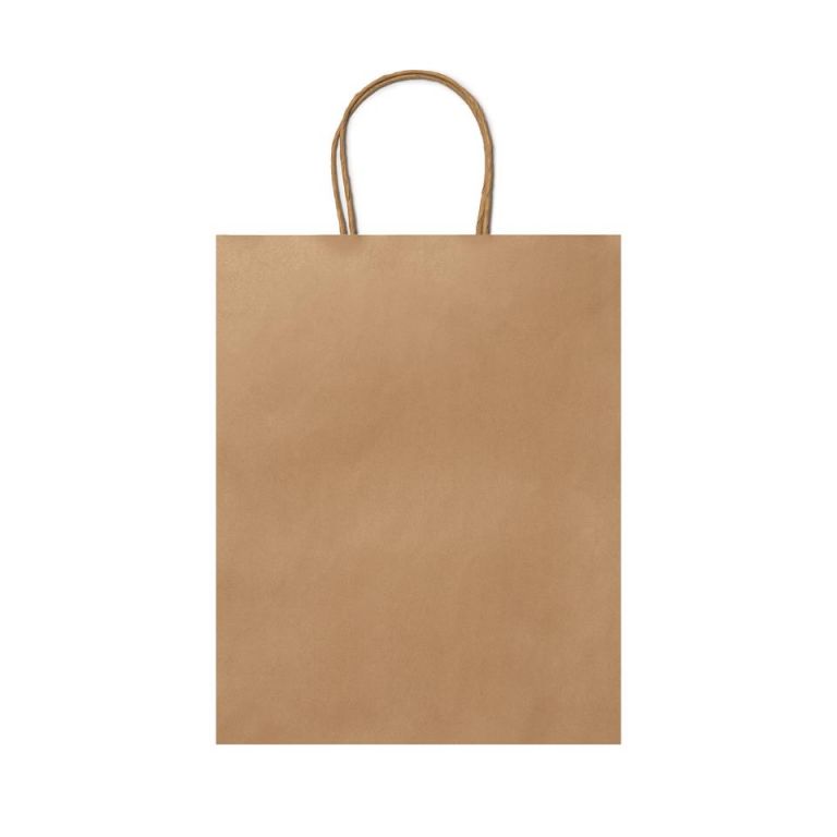 BO7538 BO7538S129 Bolsa de papel en acabado natural 110 g/m². Asa cortas reforzadas en diseño rizado.Color Crudo. Composición: Papel 110 g/m².Medidas:ANCHO 11cmLARGO 25cmALTURA 31cmTambién disponibles en colores, Marino, Rojo, Verde Helecho, Blanco, Negro.Consulta sin compromiso la posibilidad de personalizarlas.( bolsas personalización comercios tiendas )