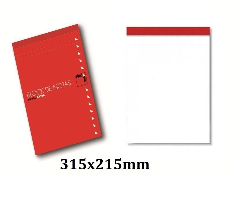 8412855189025Descripción:• Blocs de notas perforado con cubierta 80 hojas Pacsa Folio liso.• Con tapa de cartoncillo.• Dimensiones 315x215mm.• Papel blanco de 60g/m2, liso. Micro perforados. (oficina)