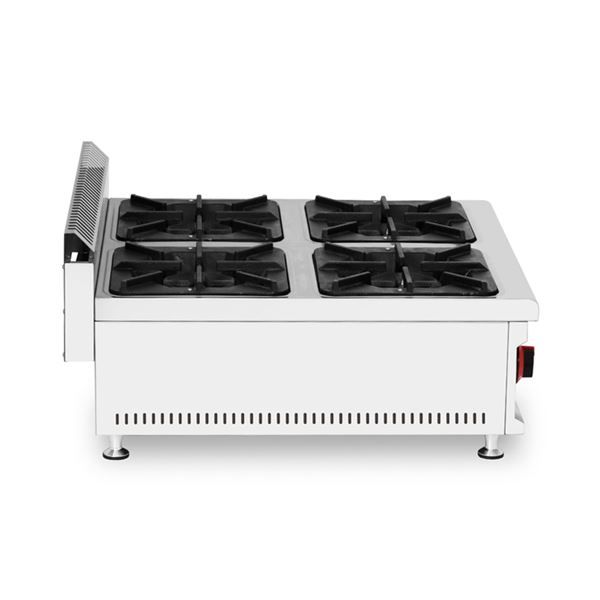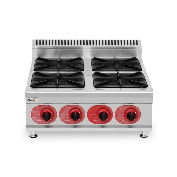 CF0129 8436049043029 COCINA A GAS PROFESIONAL 4 FUEGOS CHEF PRO• La CHEF PRO CF0129 es una cocina a gas de cuatro quemadores, diseñada para cocinas profesionales que requieren potencia, resistencia y versatilidad. Con su estructura en acero inoxidable y fogones de hierro fundido, ofrece un alto rendimiento y durabilidad, ideal para restaurantes, hoteles, bares y servicios de catering.• Sus 4 quemadores de gran tamaño (300 × 300 mm) permiten cocinar múltiples preparaciones de forma simultánea, optimizando la productividad en horarios de alta demanda.• Incorpora sistema de protección contra apagado de llama (flameout protection) para garantizar un uso seguro en entornos profesionales.• Con diseño compacto de sobremesa, es fácil de limpiar y mantener, aportando eficiencia y confiabilidad en el día a día.• 4 quemadores de alta potencia para uso intensivo.• Funcionamiento con gas LPG (butano/propano).• Fogones y parrillas en hierro fundido, resistentes y de alta retención térmica.• Paneles de acero inoxidable SS201 estampados y moldeados.• Protección contra apagado de llama.• Diseño de sobremesa, robusto y fácil de limpiar.• Especificaciones técnicas:- Gas utilizado: LPG- Tamaño de quemadores: 300 × 300 mm- Dimensiones del producto: 700 × 790 × 400 mm- Dimensiones del embalaje: 885 × 800 × 430 mm- Peso neto: 32 kg- Peso bruto: 40 kg- Espesor: Encimera 1.0 mm / Paneles laterales 0.8 mm- Incluye: 4 fuegos independientes con controles individuales- No incluye: manguera ni regulador de gas• Materiales:- Encimera y laterales: Acero inoxidable SS201- Fogones y parrillas: Hierro fundido ( hosteleria maquinaria cocina restaurante )Comprar Cocina Gas Profesional LanzaroteComprar Cocina Gas Profesional Canarias Tienda Mandatelo Oficial