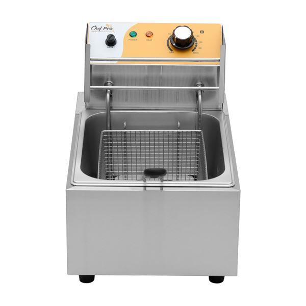 CF0100 8436049042732 FREIDORA ELÉCTRICA PROFESIONAL 9 LITROS 2500W CHEF PRO• Freidora eléctrica de 9 litros CHEF PRO, ideal para restaurantes, bares y negocios de hostelería. Potencia de 2,5 kW, cuba de acero inoxidable y control de temperatura con termostato de seguridad.• La freidora eléctrica CHEF PRO CF0100 está diseñada para un uso intensivo en cocinas profesionales. Con una capacidad total de 9 litros y potencia de 2,5 kW, permite freír grandes cantidades de alimentos de forma rápida y uniforme. Su fabricación en acero inoxidable asegura durabilidad e higiene, mientras que la cesta de níquel con asa extraíble facilita el trabajo diario.• Gracias a su termostato regulable y sistema de seguridad contra sobrecalentamiento, esta freidora garantiza un control preciso de la temperatura, optimizando consumos y alargando la vida útil del aceite. Una opción fiable para restaurantes, hoteles, caterings y negocios de comida rápida.• Especificaciones técnicas- Voltaje: 220-240V / 50Hz- Potencia: 2,5 kW- Capacidad de aceite: 5,5 – 7 L- Capacidad total del tanque: 9 L- Capacidad mínima/máxima de aceite: 4,15 L – 6,25 L- Tamaño de la cesta: 245 × 180 × 105 mm- Tamaño del tanque: 295 × 235 × 145 mm- Dimensiones del producto: 280 × 436 × 310 mm- Dimensiones del embalaje: 490 × 330 × 350 mm- Peso neto: 5,2 kg- Peso bruto: 6,1 kg- Material: Acero inoxidable con cesta de níquel y hierro- Dispositivo de control: Termostato + limitador de temperatura ( hosteleria maquinaria cocina restaurante )Comprar Freidora Electrica Profesional LanzaroteComprar Freidora Electrica Profesional Canarias Tienda Mandatelo Oficial