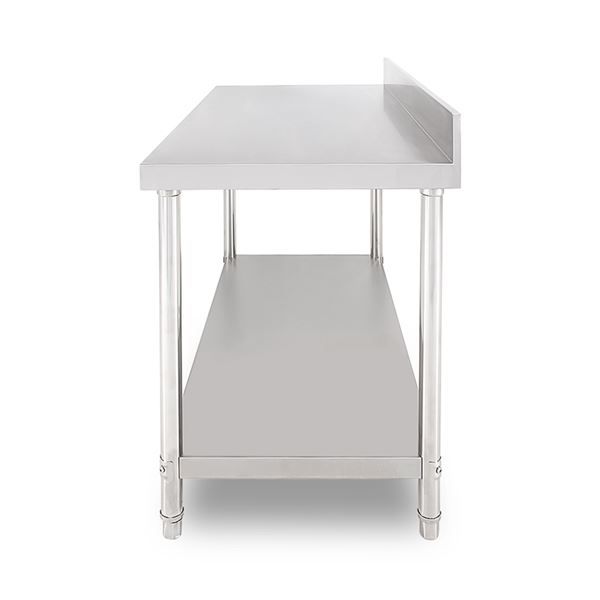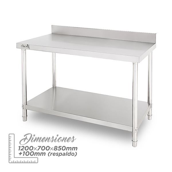 CF0132 8436049043050MESA DE TRABAJO ACERO INOXIDABLE 120X70X85CM CON RESPALDO CHEF PRO• La mesa de trabajo CHEF PRO CF0132 está fabricada en acero inoxidable de alta resistencia (SS201), ideal para cocinas profesionales, restaurantes, hoteles y catering.• Incorpora un respaldo trasero de 10 cm, que evita derrames y mantiene la pared limpia, ofreciendo mayor higiene y comodidad en la preparación de alimentos.• Su estructura reforzada y estante inferior proporcionan gran capacidad de carga y organización.• Tubos redondos de soporte que garantizan estabilidad y durabilidad en usos intensivos.• Dimensiones: 1200 × 700 × 850 + 100 mm (respaldo)• Espesor del tablero superior: 1.0 mm• Espesor del estante inferior: 0.8 mm• Refuerzo interno con nervaduras• No regulable en altura• Material: acero inoxidable SS201• Tamaño del embalaje: 1220 × 710 × 190 mmLa mesa se entrega desmontada, incluye instrucciones básicas para montar. ( hosteleria maquinaria cocina restaurante )Comprar Mesa Acero Inoxidable Profesional LanzaroteComprar Mesa Acero Inoxidable Profesional Canarias Tienda Mandatelo Oficial