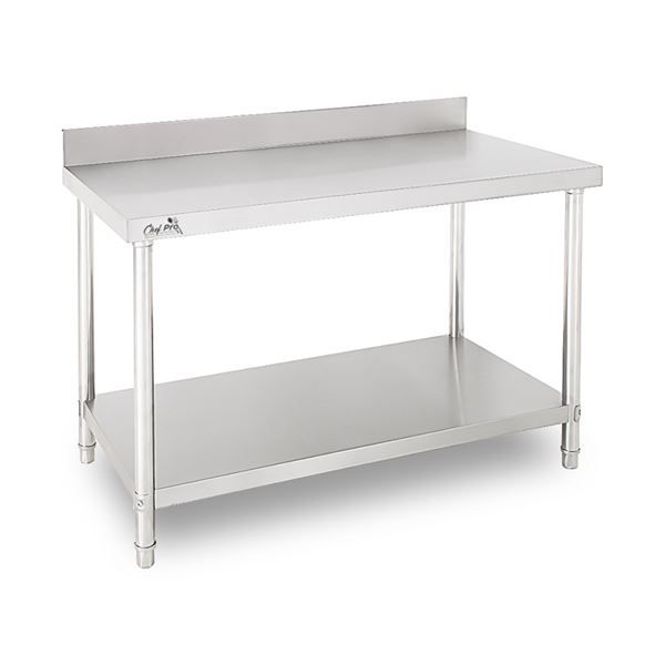 CF0134 8436049043074MESA DE TRABAJO ACERO INOXIDABLE 140X70X85CM CON RESPALDO CHEF PRO• La mesa de trabajo CHEF PRO CF0134 está fabricada en acero inoxidable de alta resistencia (SS201), ideal para cocinas profesionales, restaurantes, hoteles y catering.• Incorpora un respaldo trasero de 10 cm, que evita derrames y mantiene la pared limpia, ofreciendo mayor higiene y comodidad en la preparación de alimentos.• Su estructura reforzada y estante inferior proporcionan gran capacidad de carga y organización.• Tubos redondos de soporte que garantizan estabilidad y durabilidad en usos intensivos.• Dimensiones: 1400 × 700 × 850 + 100 mm (respaldo)• Espesor del tablero superior: 1.0 mm• Espesor del estante inferior: 0.8 mm• Refuerzo interno con nervaduras• No regulable en altura• Material: acero inoxidable SS201• Tamaño del embalaje: 1420 × 710 × 190 mmLa mesa se entrega desmontada, incluye instrucciones básicas para montar. ( hosteleria maquinaria cocina restaurante )Comprar Mesa Acero Inoxidable Profesional LanzaroteComprar Mesa Acero Inoxidable Profesional Canarias Tienda Mandatelo Oficial